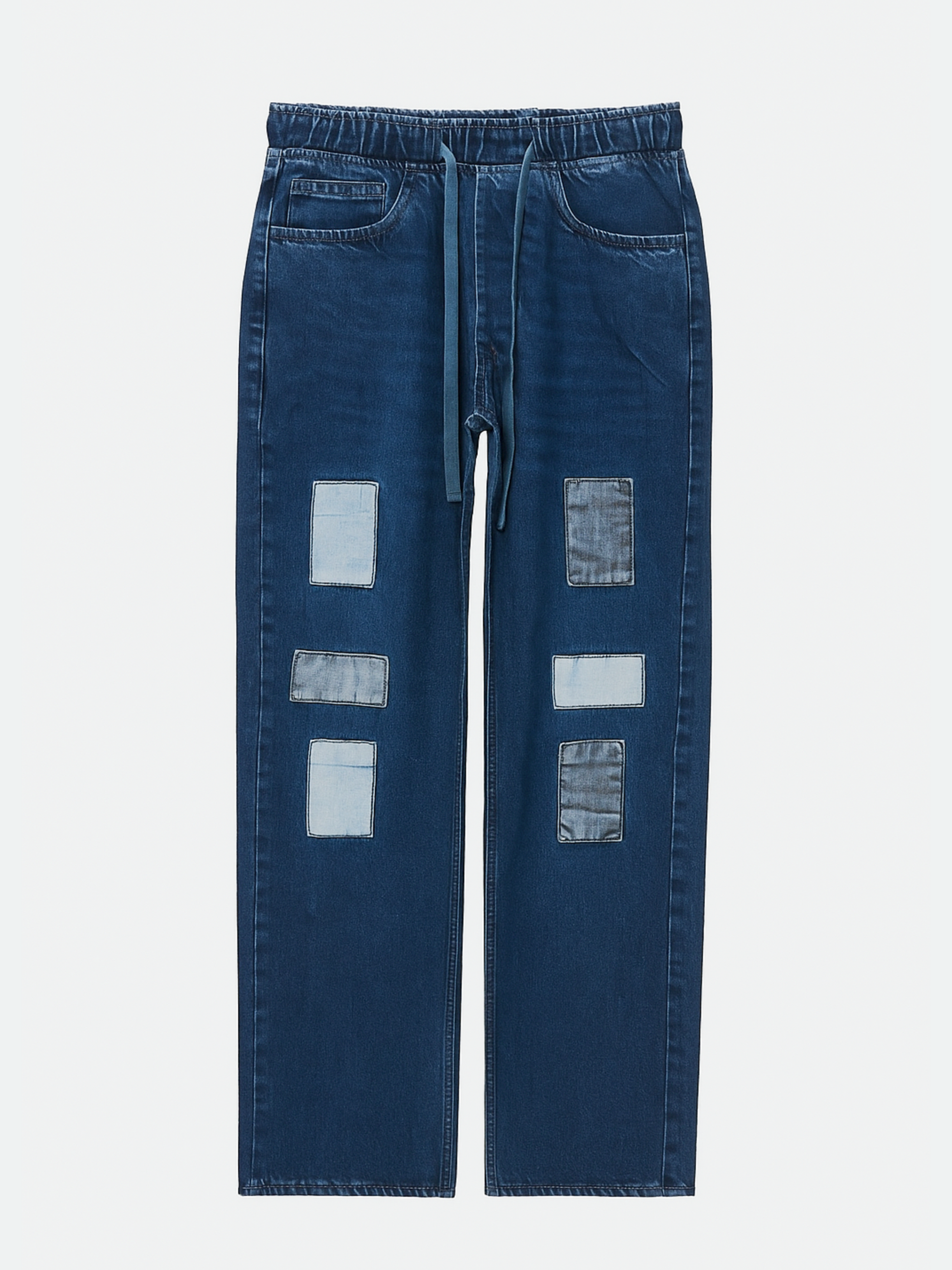 Step up your casual wear with these stylish Dual-Tone Patchwork Denim Joggers. Featuring a modern jogger fit with an elastic waistband and drawstring for all-day comfort, these jeans stand out with eye-catching light blue patch detailing on the front legs. Crafted from soft, stretchable denim, they offer a relaxed silhouette perfect for laid-back days with a bold twist. Ideal for streetwear lovers who appreciate a mix of comfort and edge.